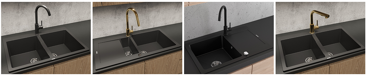 Oltens Gravan žulový jeden a půl komorový dřez s odkapávačem 100 x 50 cm, matná černá 72300300