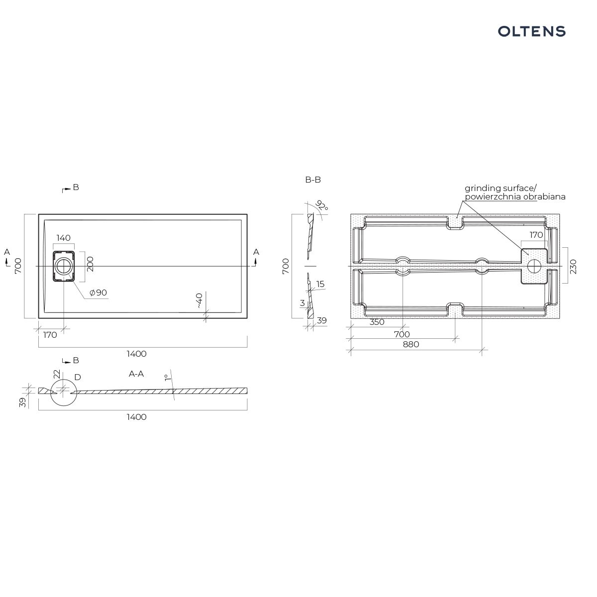 Vlastnosti produktu Oltens Bergytan obdélníková vanička 140 x 70 cm RockSurface, matná černá 15105300