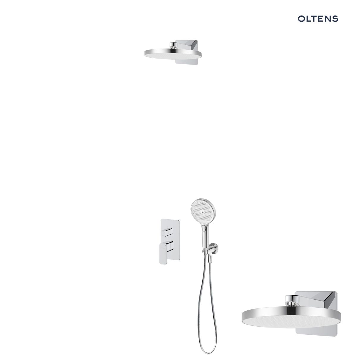 Oltens Hadsel set podomítkové vanové a sprchové baterie s dešťovou sprchou Regna a 3funkční sprchovou hlavicí Luva EasyClick, chrom 36029100