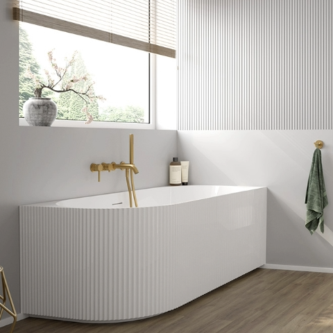 Módní rýhovaná povrchová úprava van Hamnes se ideálně hodí jak do klasických, tak i do designovějších interiérů, kterým dodává originální charakter. Drážky na vnějším povrchu vany dokonale lámou světlo a zpestřují rovné povrchy použité v designu koupelny. Decentní horizontální vroubkování přitáhne pozornost perfektním zpracováním a navozuje v koupelně pocit lehkosti a decentního stylu.