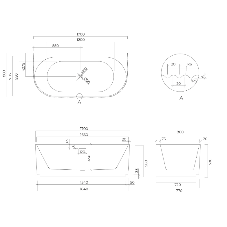 Módní rýhovaná povrchová úprava van Hamnes se ideálně hodí jak do klasických, tak i do designovějších interiérů, kterým dodává originální charakter. Drážky na vnějším povrchu vany dokonale lámou světlo a zpestřují rovné povrchy použité v designu koupelny. Decentní horizontální vroubkování přitáhne pozornost perfektním zpracováním a navozuje v koupelně pocit lehkosti a decentního stylu.