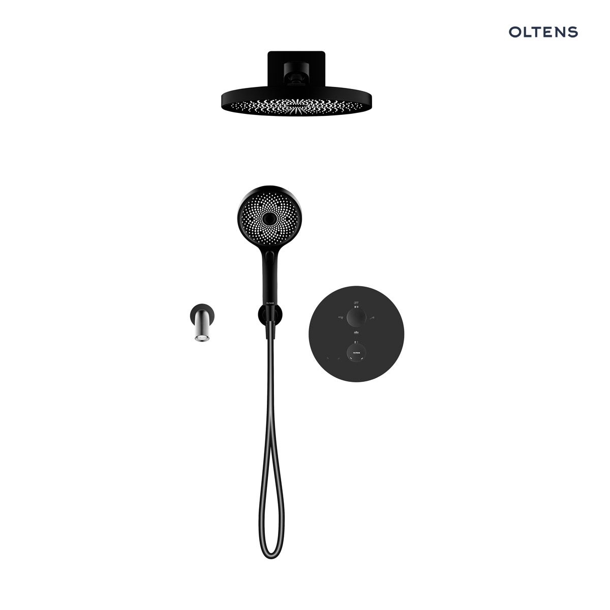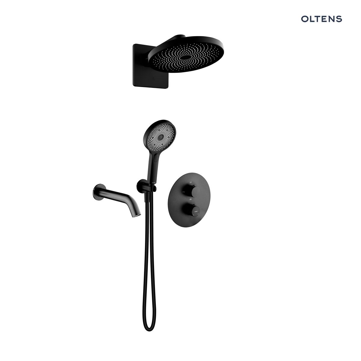 Oltens Katla set podomítková vanová a sprchová baterie s dešťovou sprchou Vann a 3funkční sprchovou hlavicí Havis EasyClick, matná černá 36065300