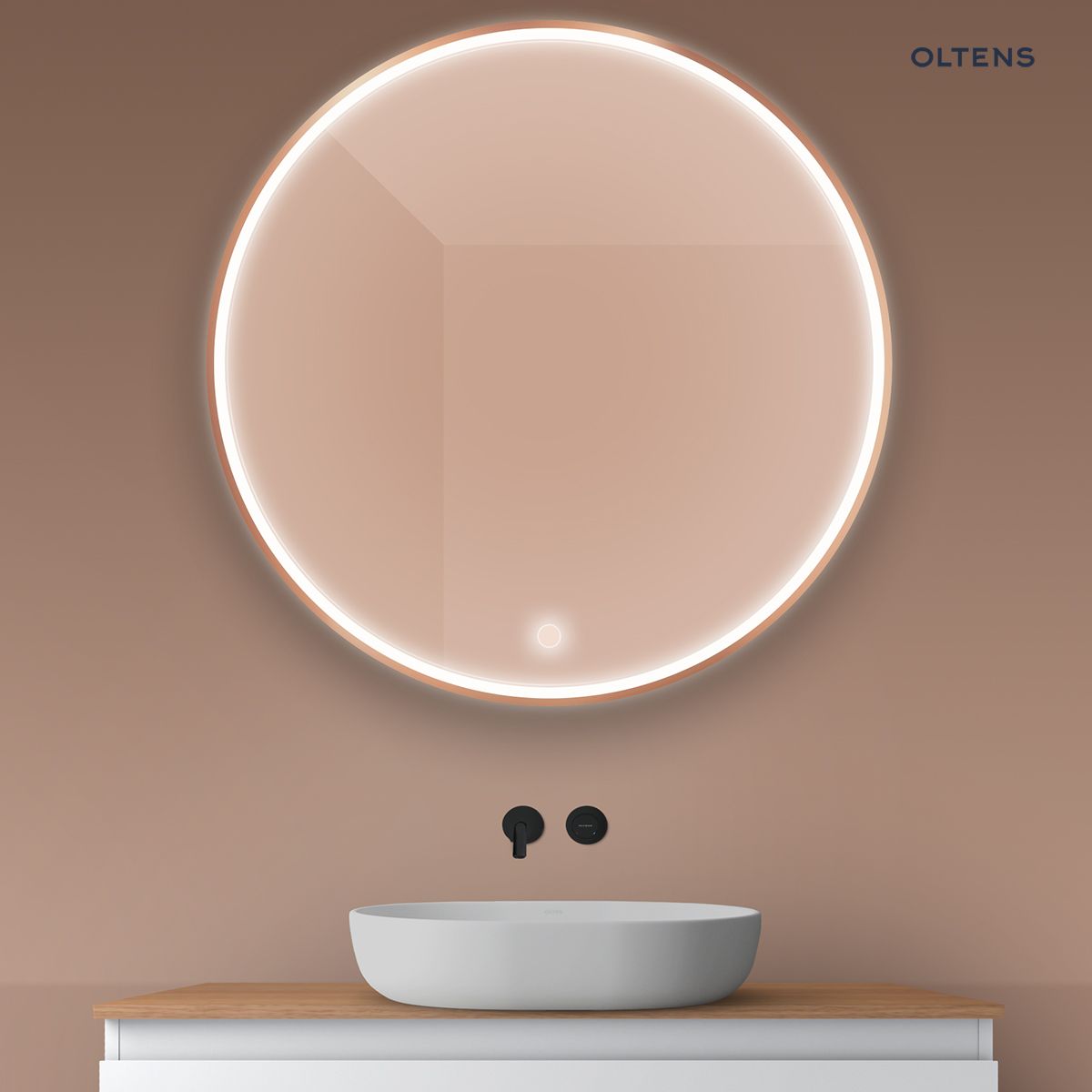 Popis produktu Oltens Nordlis zrcadlo 100 cm kulatý s osvětlením a systémem Klarglas, měď kartáčovaná 64102610