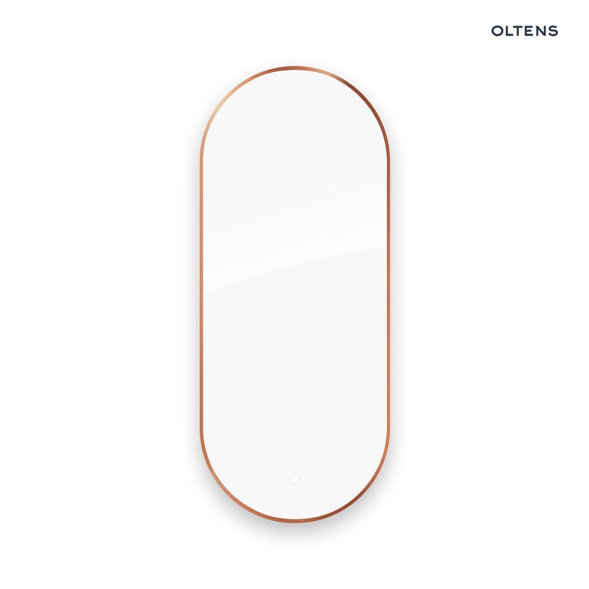 Popis produktu Oltens Nordlis zrcadlo 50x120 cm oválný s osvětlením a systémem Klarglas, měď kartáčovaná 64114610