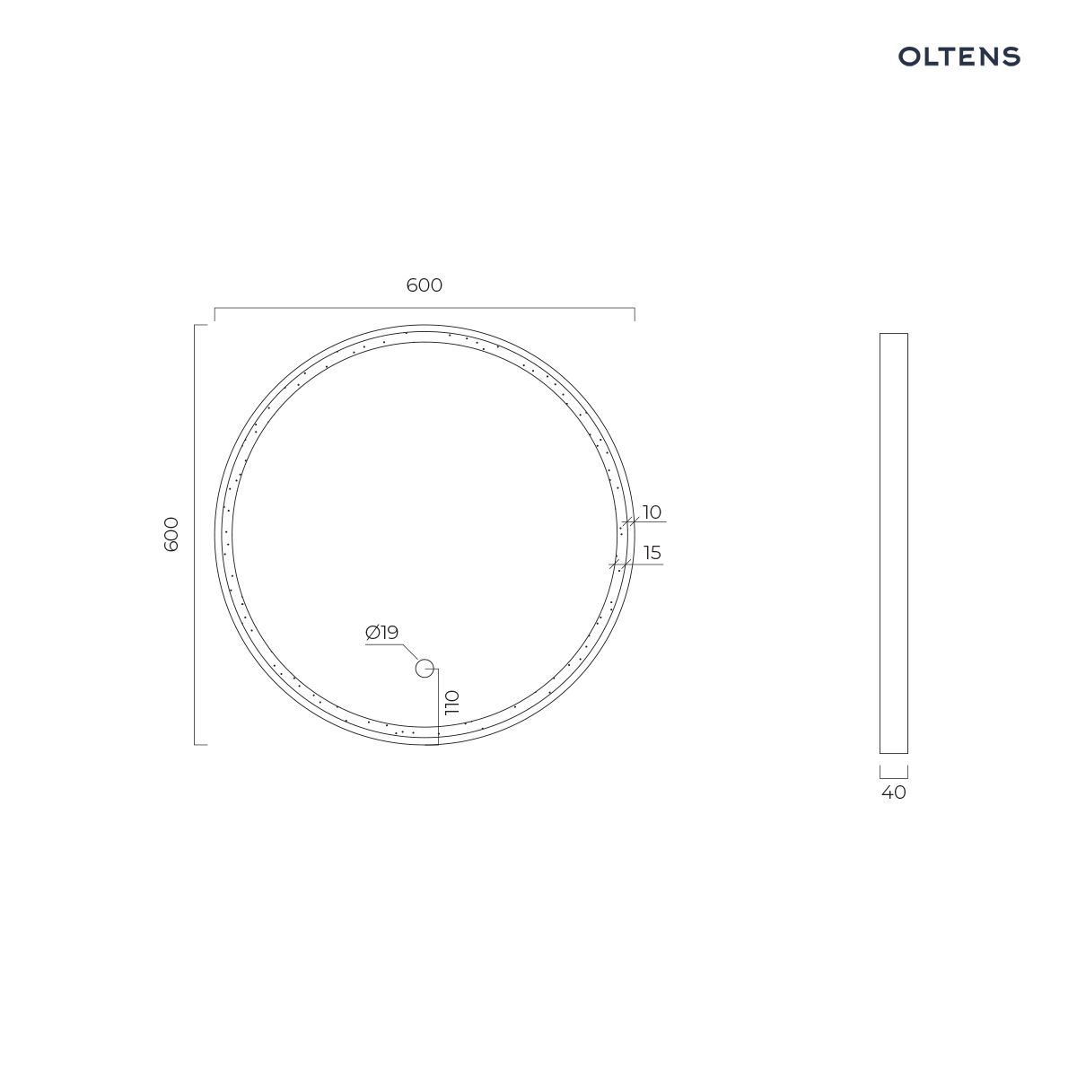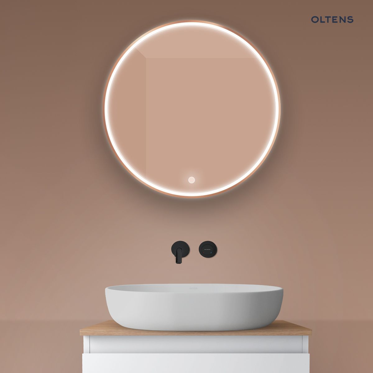 Popis produktu Oltens Nordlis zrcadlo 60 cm kulatý s osvětlením a systémem Klarglas, měď kartáčovaná 64100610