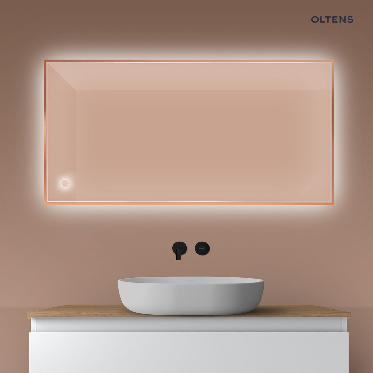 Oltens Nordlis zrcadlo 60x120 cm obdélníkový s osvětlením a systémem Klarglas, měď kartáčovaná 64112610