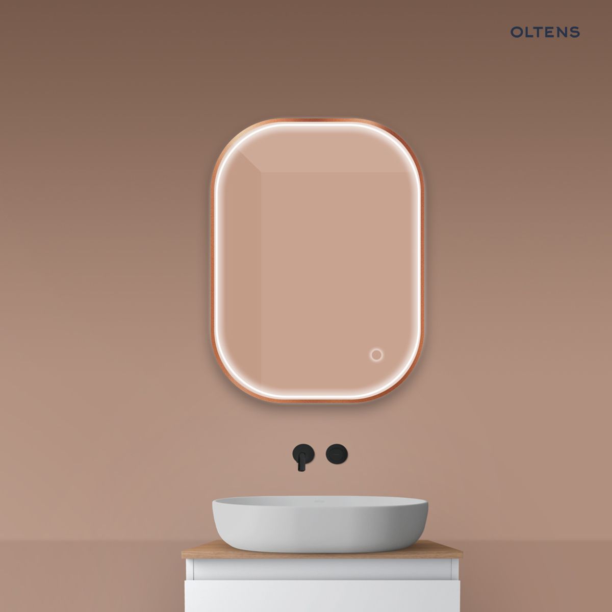Oltens Nordlis zrcadlo 60x80 cm obdélníkový s osvětlením a systémem Klarglas, měď kartáčovaná 64123610