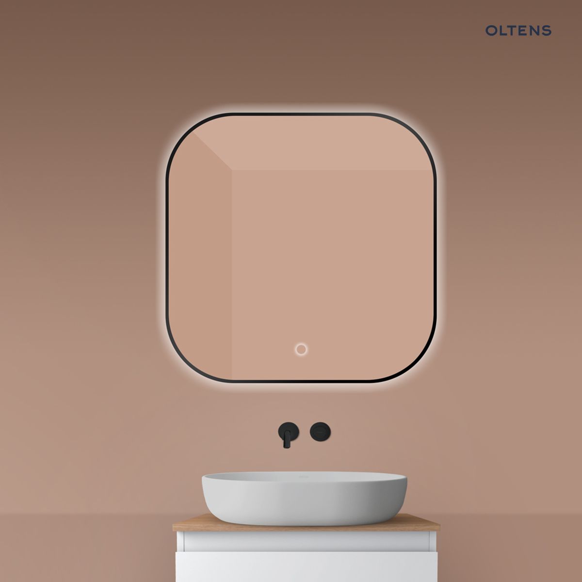 Popis produktu Oltens Nordlis zrcadlo 80x80 cm čtvercový s osvětlením a systémem Klarglas, černá 64125300