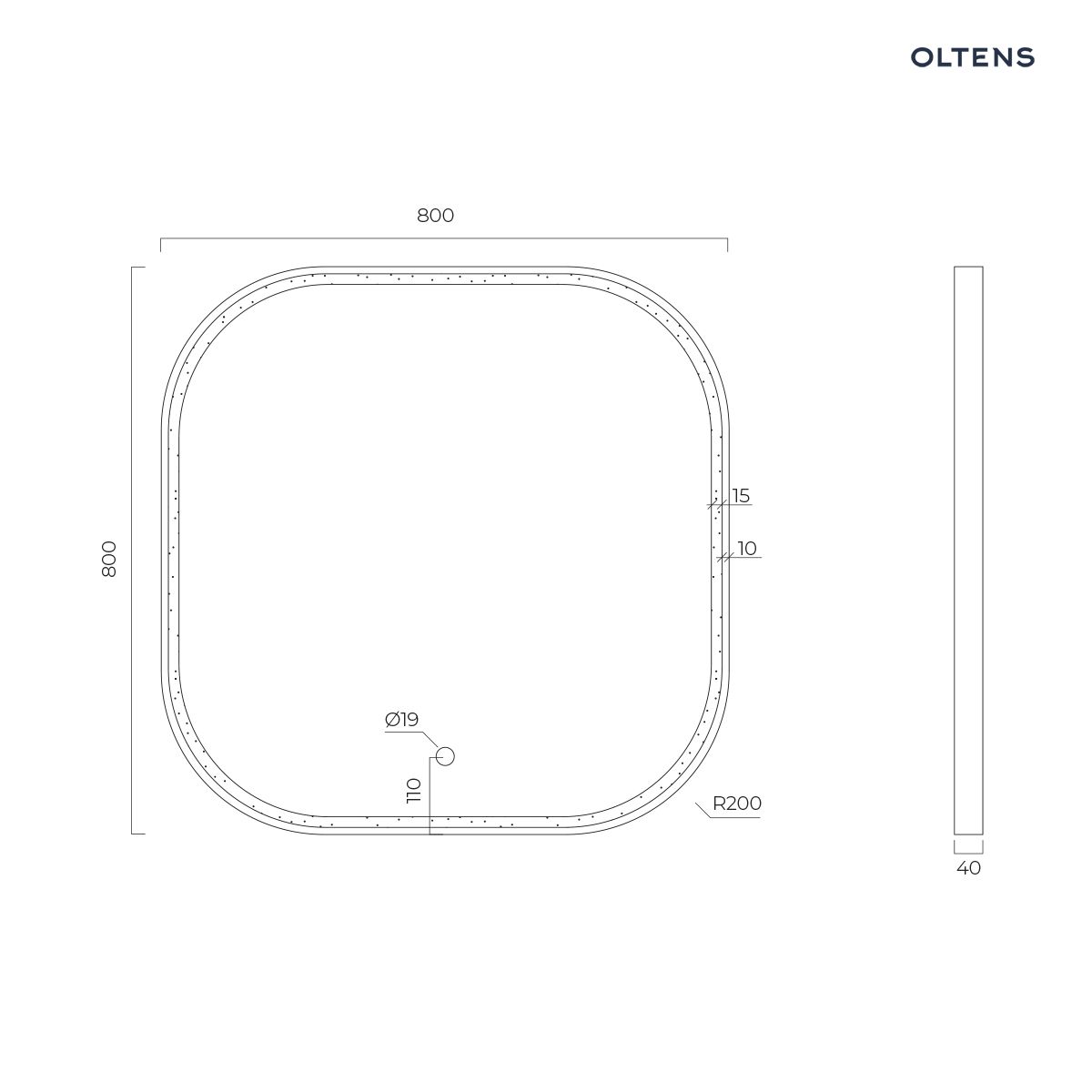 Vlastnosti produktu Oltens Nordlis zrcadlo 80x80 cm čtvercový s osvětlením a systémem Klarglas, měď kartáčovaná 64122610