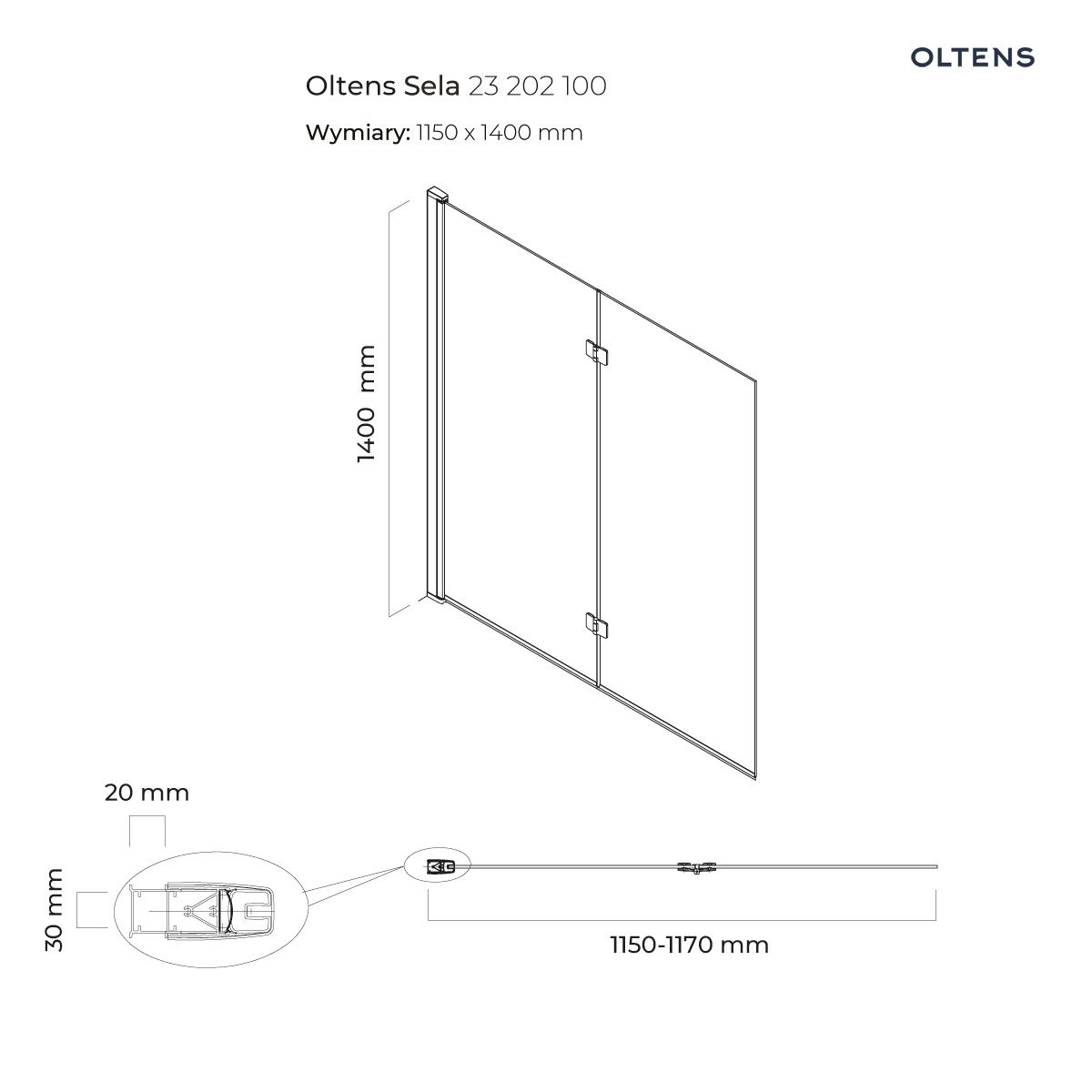 Popis produktu Oltens Sela vanová zástěna 115 x 140 cm, dvoudílná 23202100