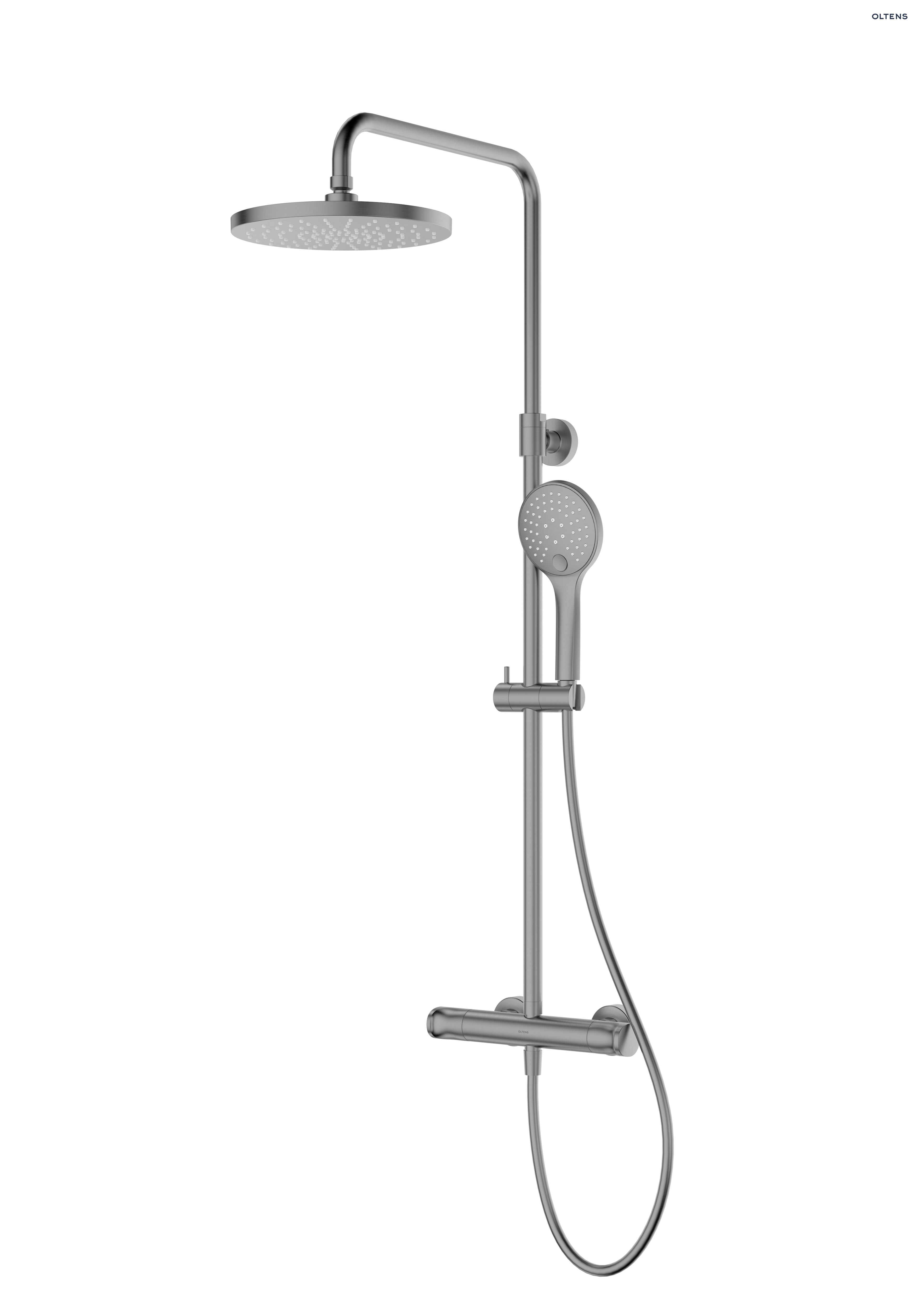 Popis produktu Oltens Vatten termostatický sprchový set s kulatou hlavovou sprchou, grafit 36505400