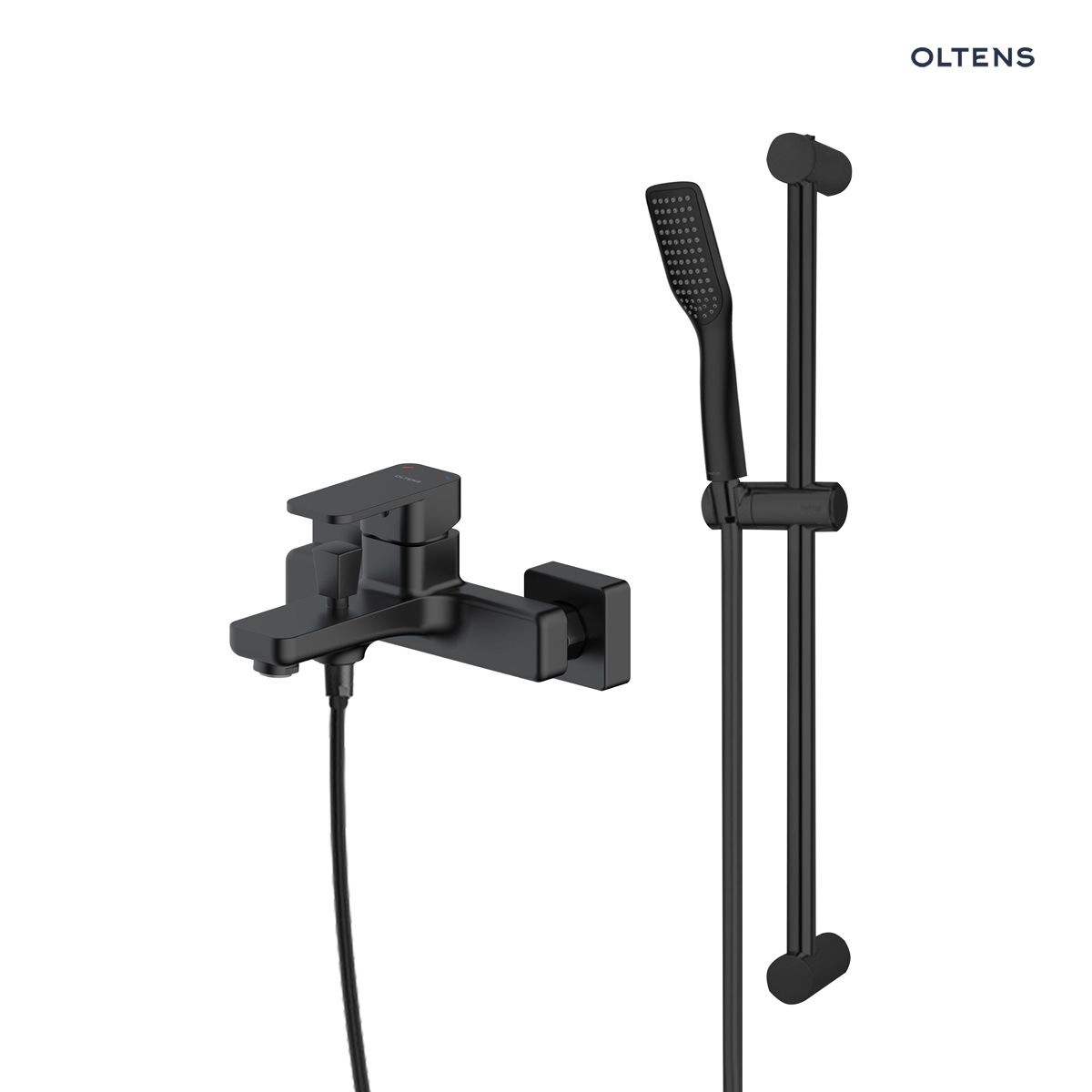 Popis produktu Set Oltens Hadsel nástěnná vanová a sprchová baterie se sprchovým setem Tinde Alling, matná černá 36058300