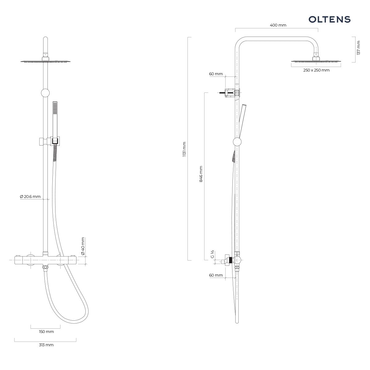Product description Oltens Boran thermostatic shower set with round rain shower head chrome finish 36502100