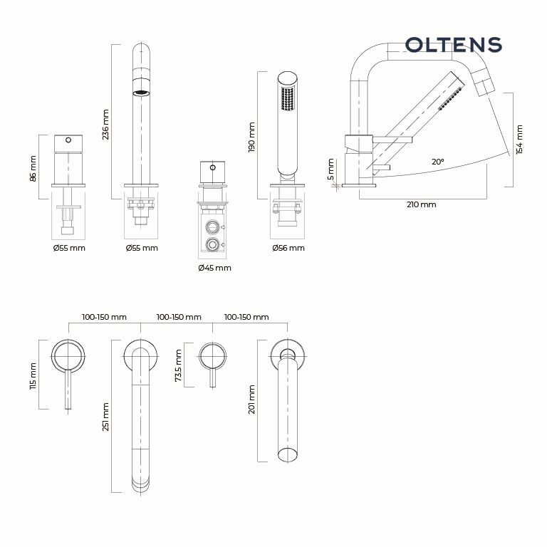 Product features Oltens Molle complete 4-piece bathtub and shower mixer chrome 34200100