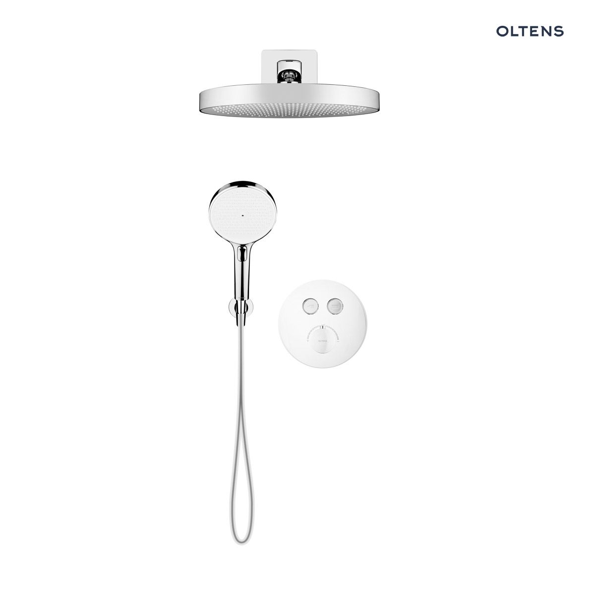 Set includes Oltens Onega concealed bath and shower mixer set with Regna rain shower head and Luva EasyClick 3-function hand shower, chrome 36070100