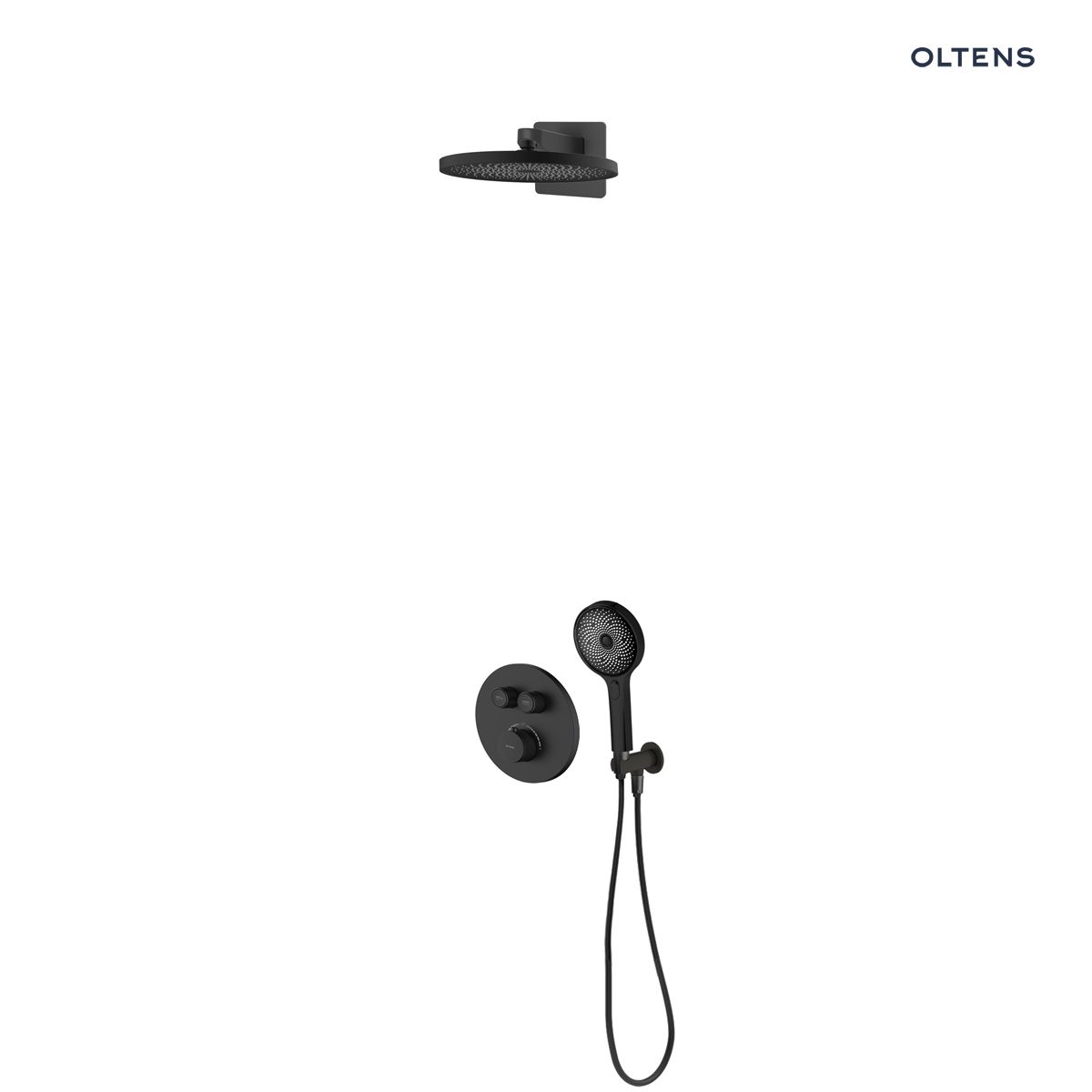 Product features Oltens Onega concealed bath and shower mixer set with Vann rain shower head and Havis EasyClick 3-function hand shower, matte black 36068300