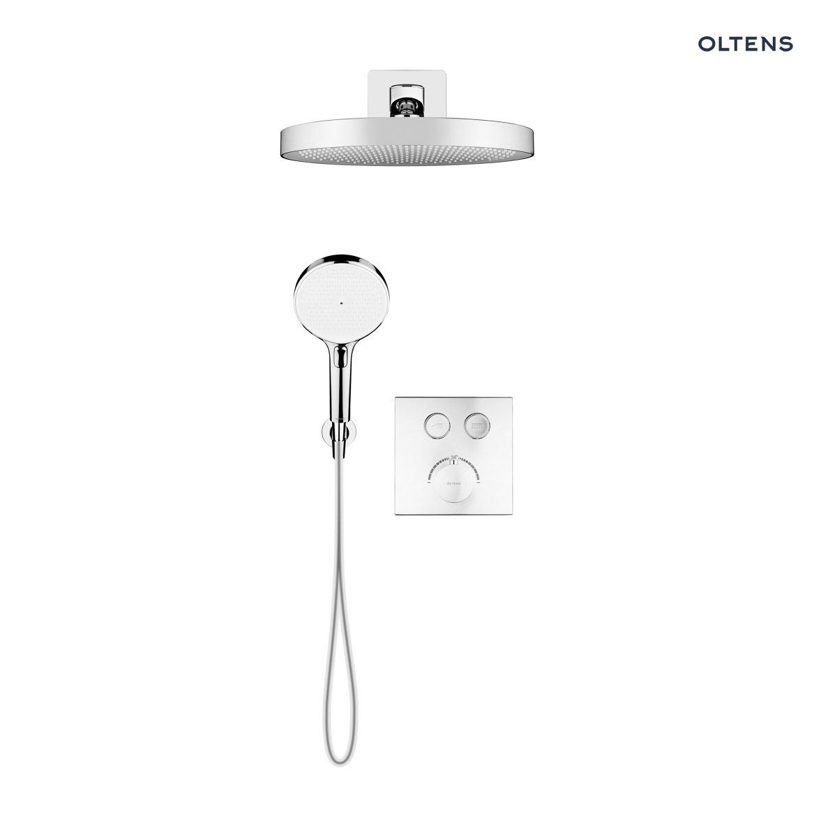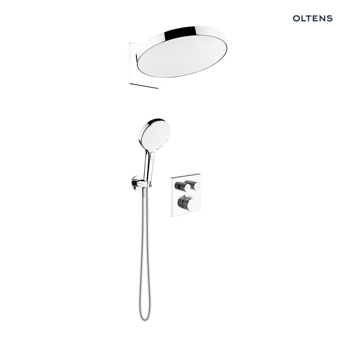 Set includes Oltens Onega (S) concealed bath and shower mixer set with Regna rain shower head and Luva EasyClick 3-function hand shower, chrome 36061100