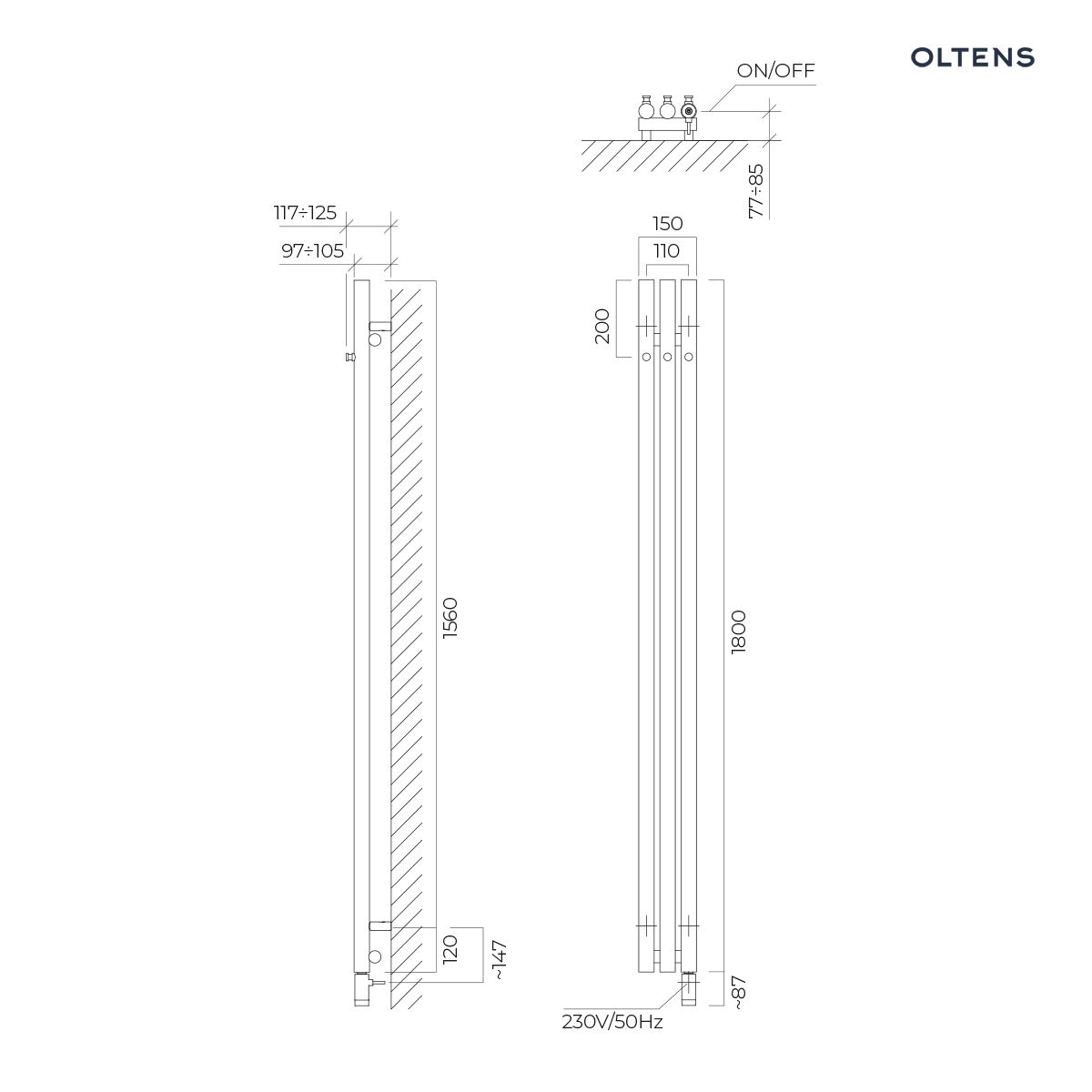 - Oltens Stang (e) bathroom radiator 180x15cm, electric,...