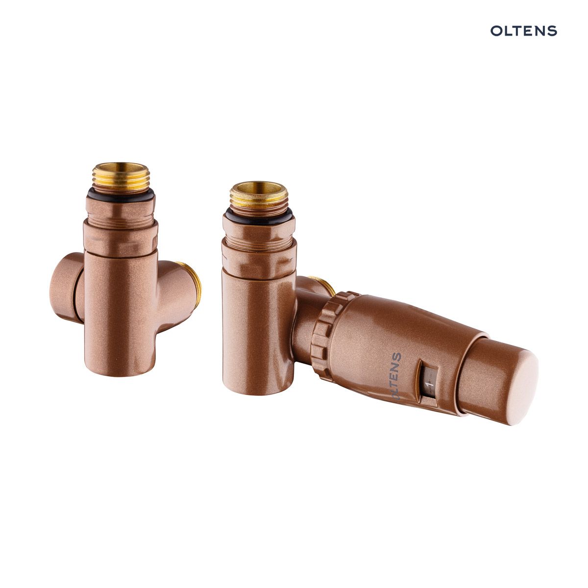 Product description Oltens Varmare Ventil thermostatic set for radiators with a tee connector, left-hand type, brushed copper 55913610