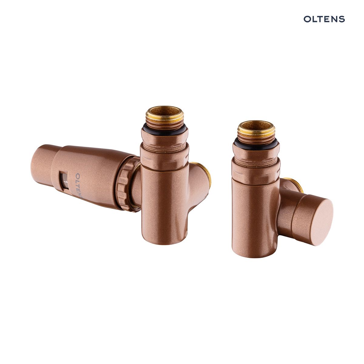 Product description Oltens Varmare Ventil thermostatic set for radiators with a tee connector, right-hand type, brushed copper 55914610