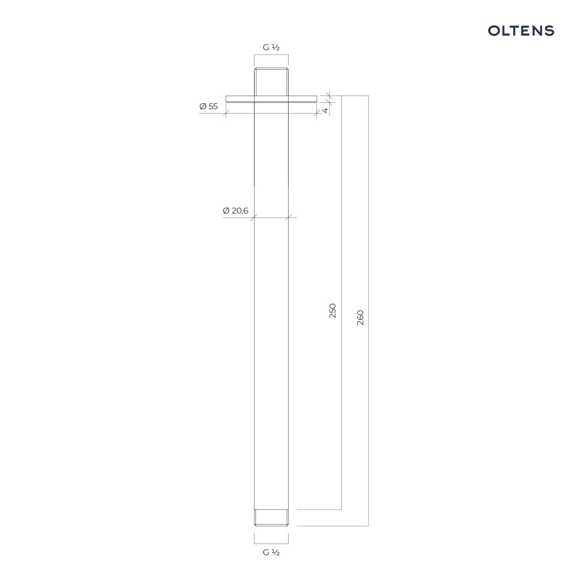 Opis produktu Oltens Aera ramię prysznicowe sufitowe 25 cm złoto szczotkowane 39404810