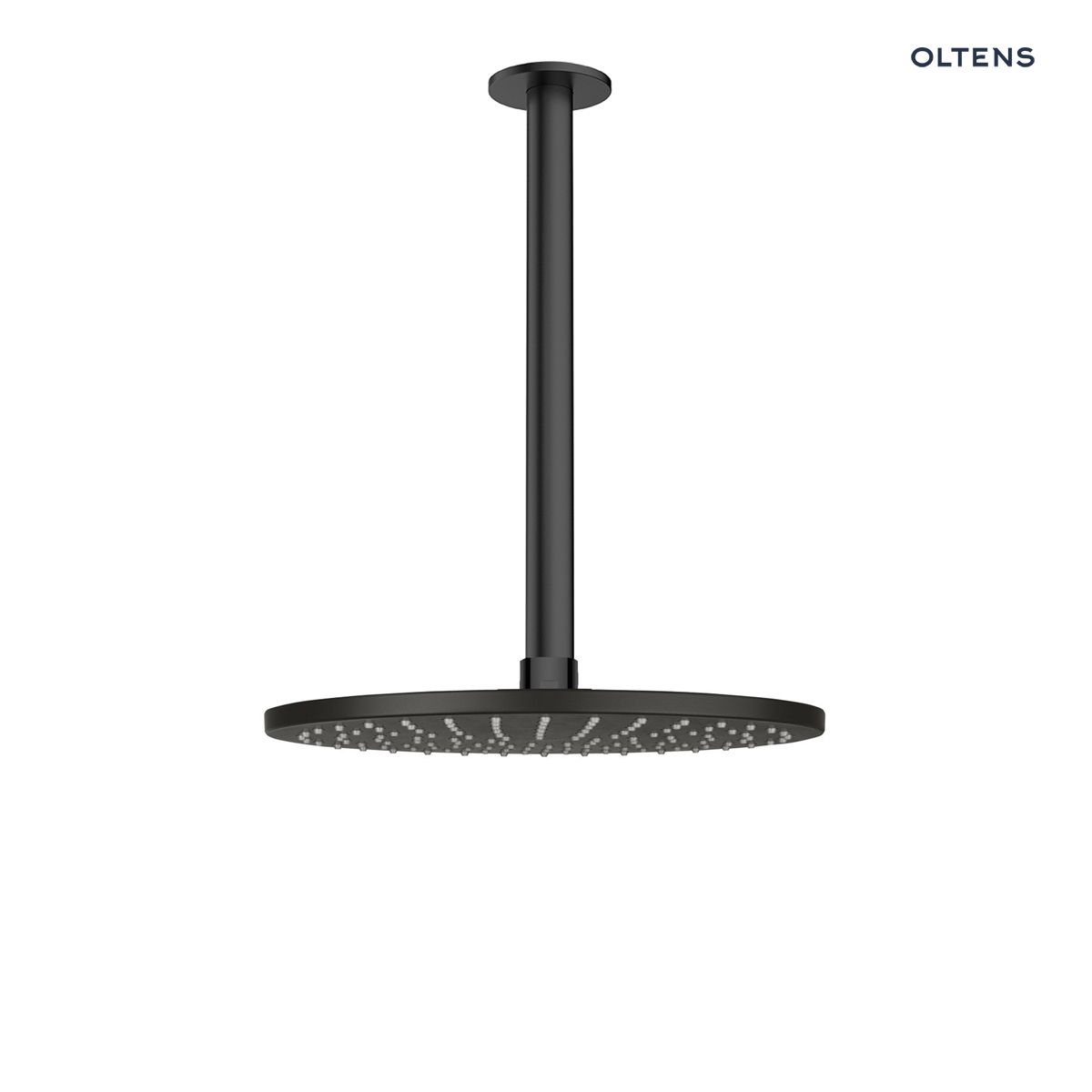 Opis produktu Oltens Atran deszczownica 22x22 cm okrągła z ramieniem sufitowym Aera czarny mat 36084300