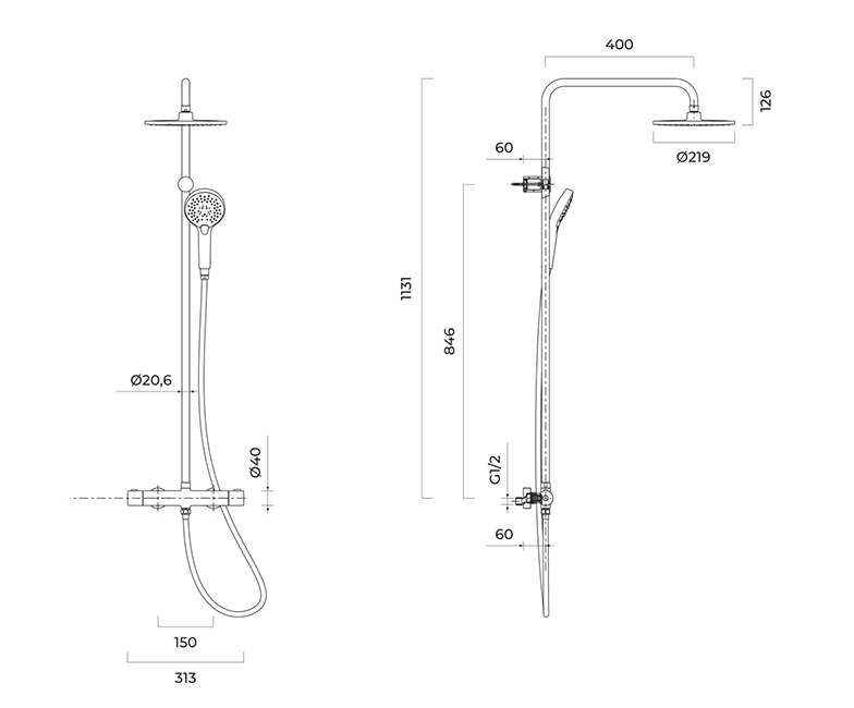 - W zestawie bateria z przełącznikiem, deszczownica, słuchawka prysznicowa, wąż prysznicowy, drążek prysznicowy