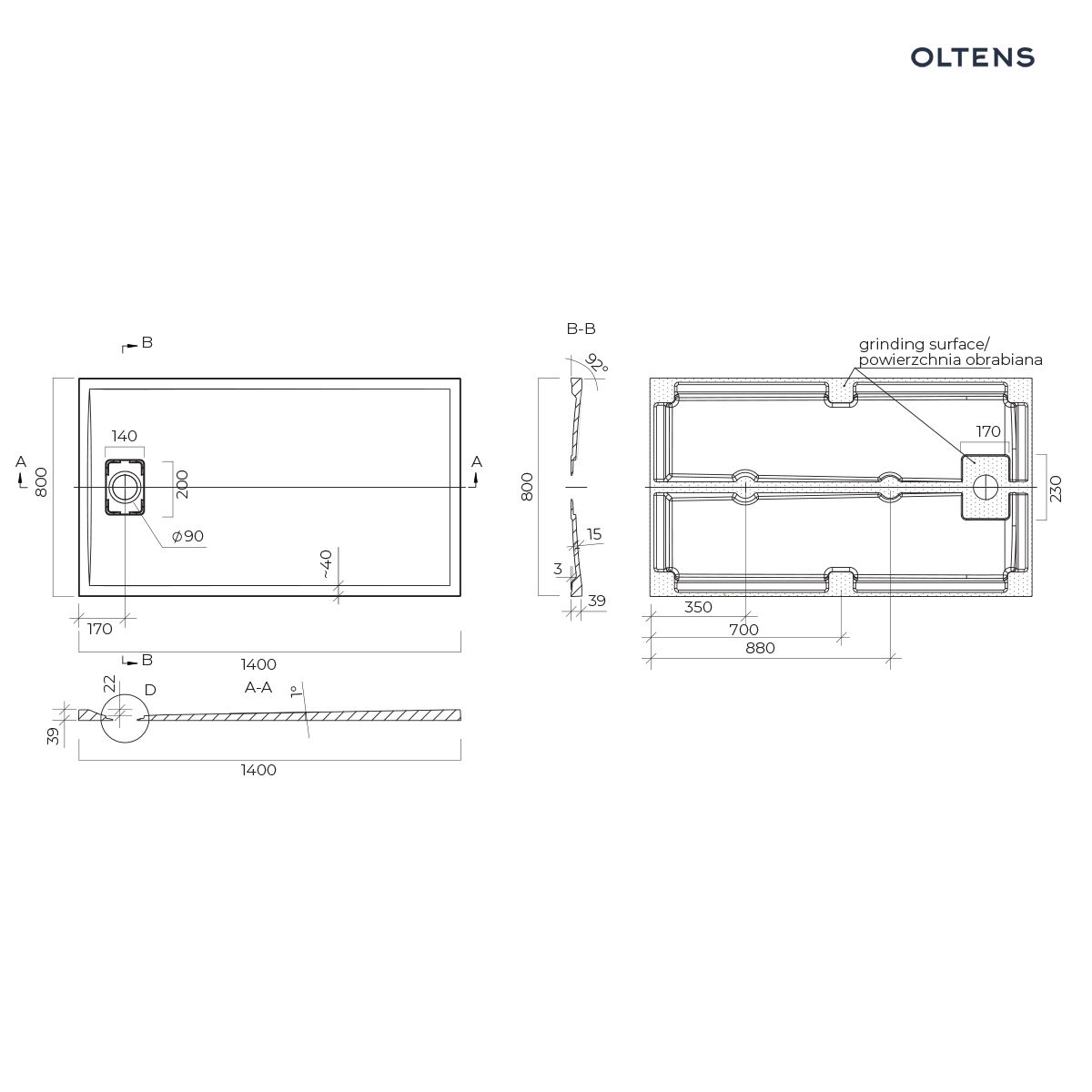 Cechy produktu Oltens Bergytan brodzik 140x80 cm prostokątny RockSurface czarny mat 15106300
