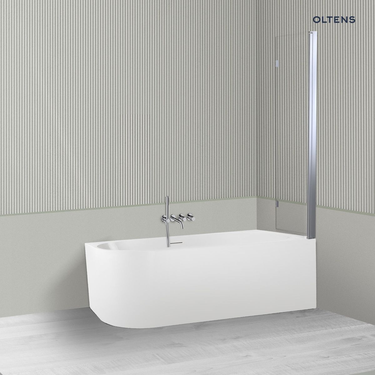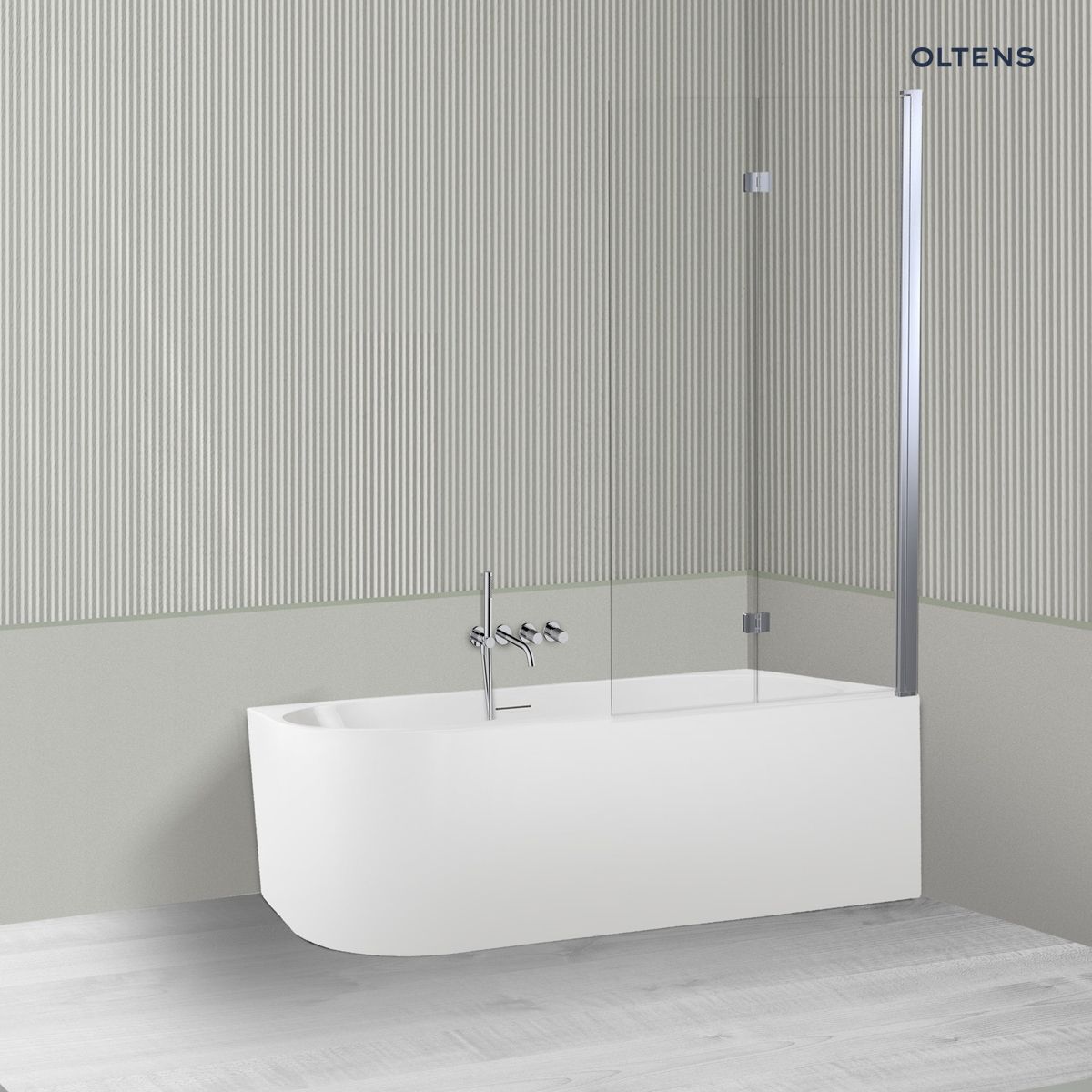 Cechy produktu Oltens Delva Sela zestaw wanna wolnostojąca narożna 170x80 cm akrylowa prawa biała z parawanem nawannowym 115 cm 2-częściowy chrom 18006000