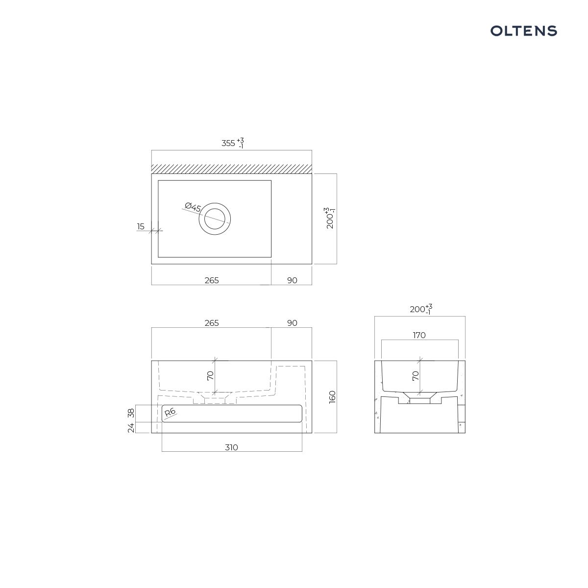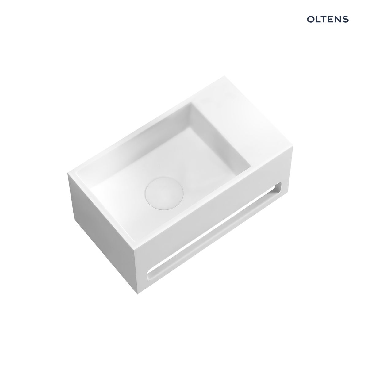 Opis produktu Oltens Fri umywalka 35,5x20 cm ścienna LavaForm prawa biały połysk 40007000