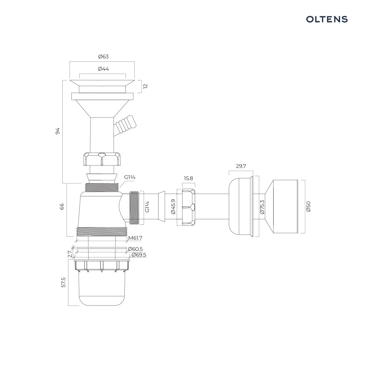 Cechy produktu Oltens Harkan syfon umywalkowy butelkowy z sitkiem metalowym 02104000