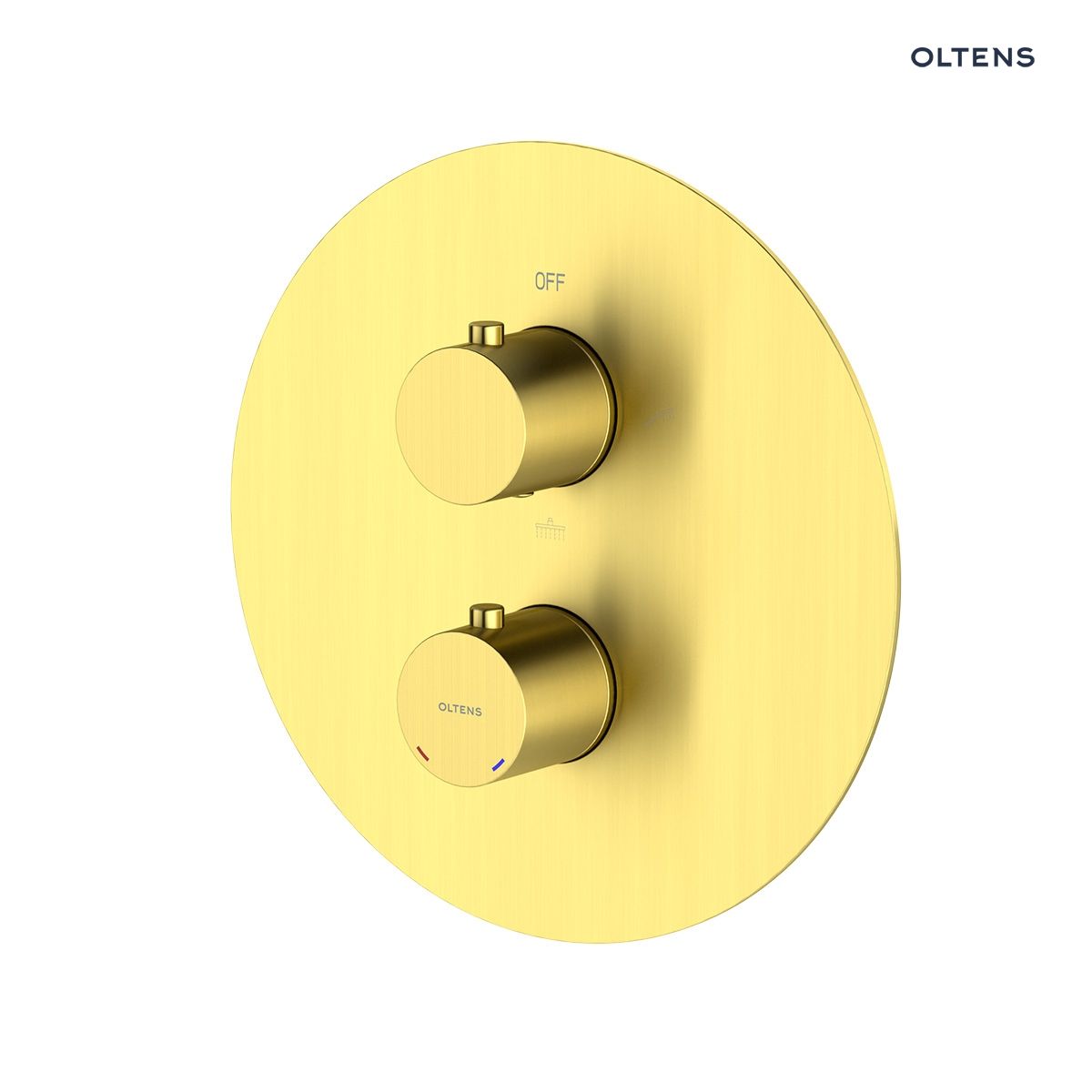 Opis produktu Oltens Katla bateria wannowo-prysznicowa termostatyczna podtynkowa złoto szczotkowane 34600810