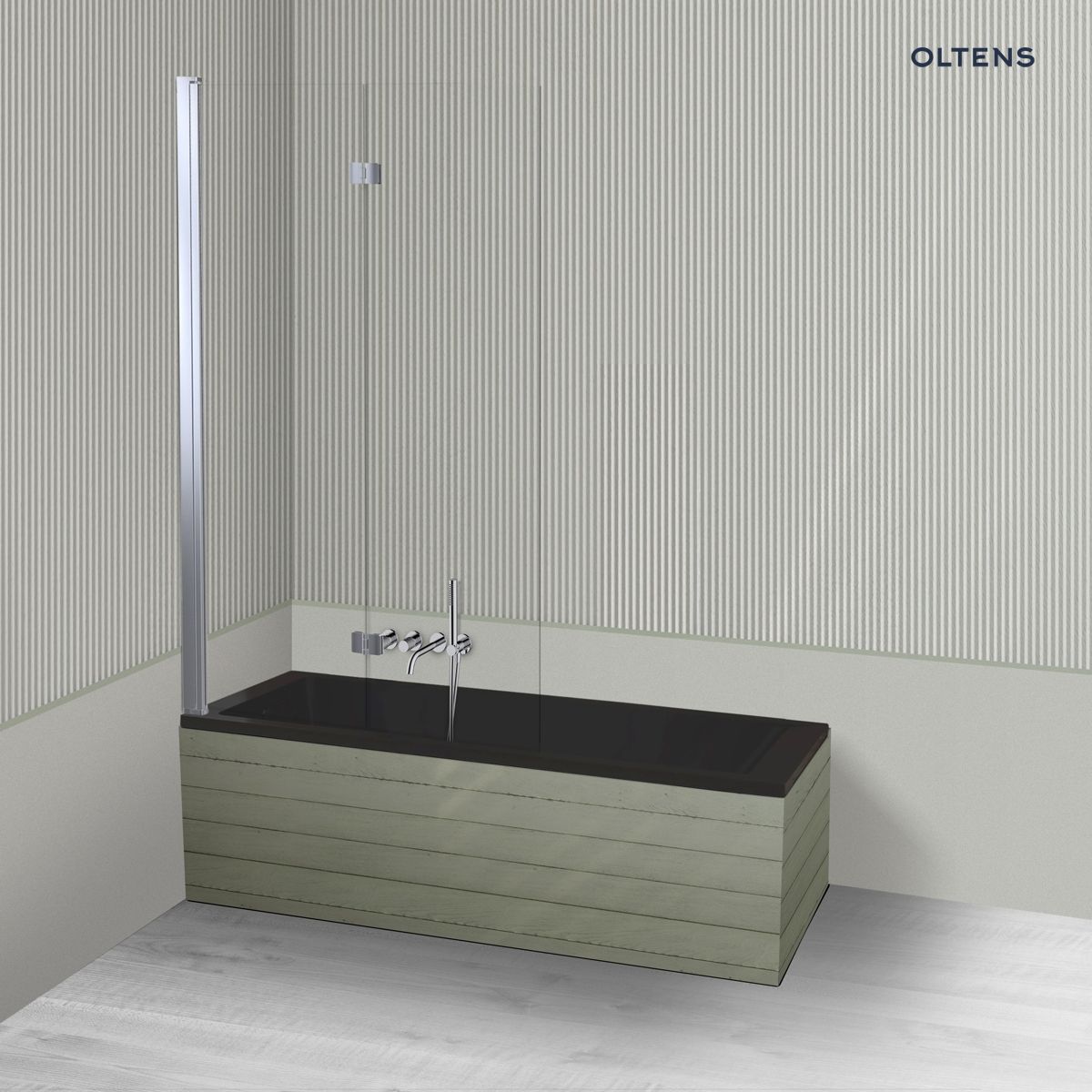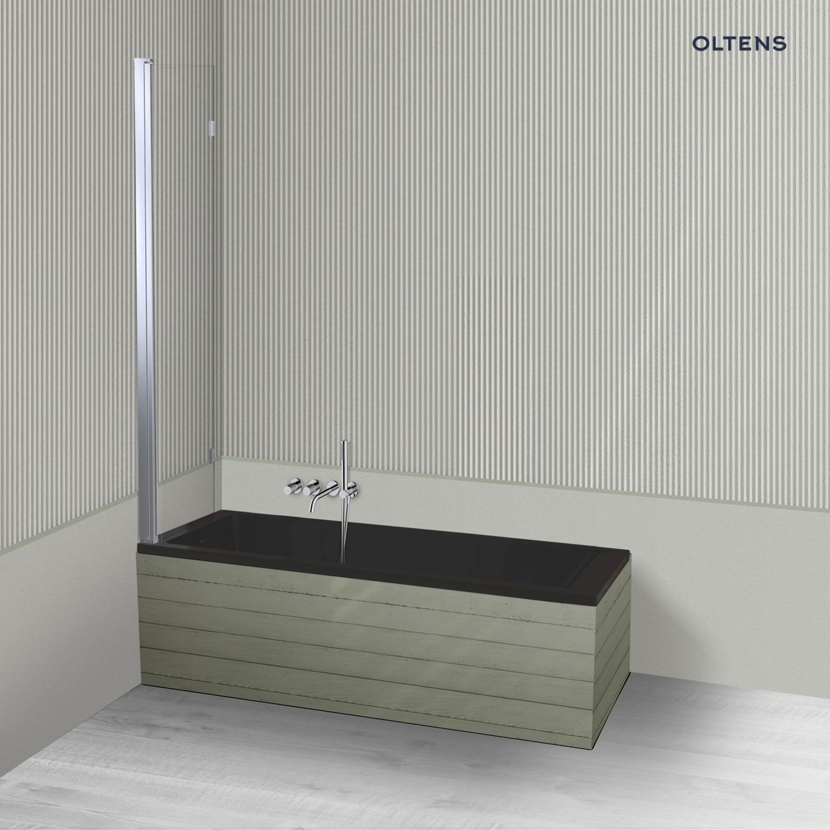 Opis produktu Oltens Langfoss Sela zestaw wanna prostokątna 150x70 cm akrylowa czarny mat z parawanem nawannowym 115 cm 2-częściowy chrom 18001300