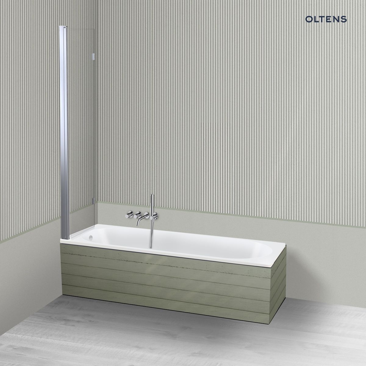 Sprawdź, co zawiera opakowanie zestawu Oltens Lykke Sela zestaw wanna prostokątna 160x70 cm akrylowa biała z parawanem nawannowym 115 cm 2-częściowy chrom 18011000