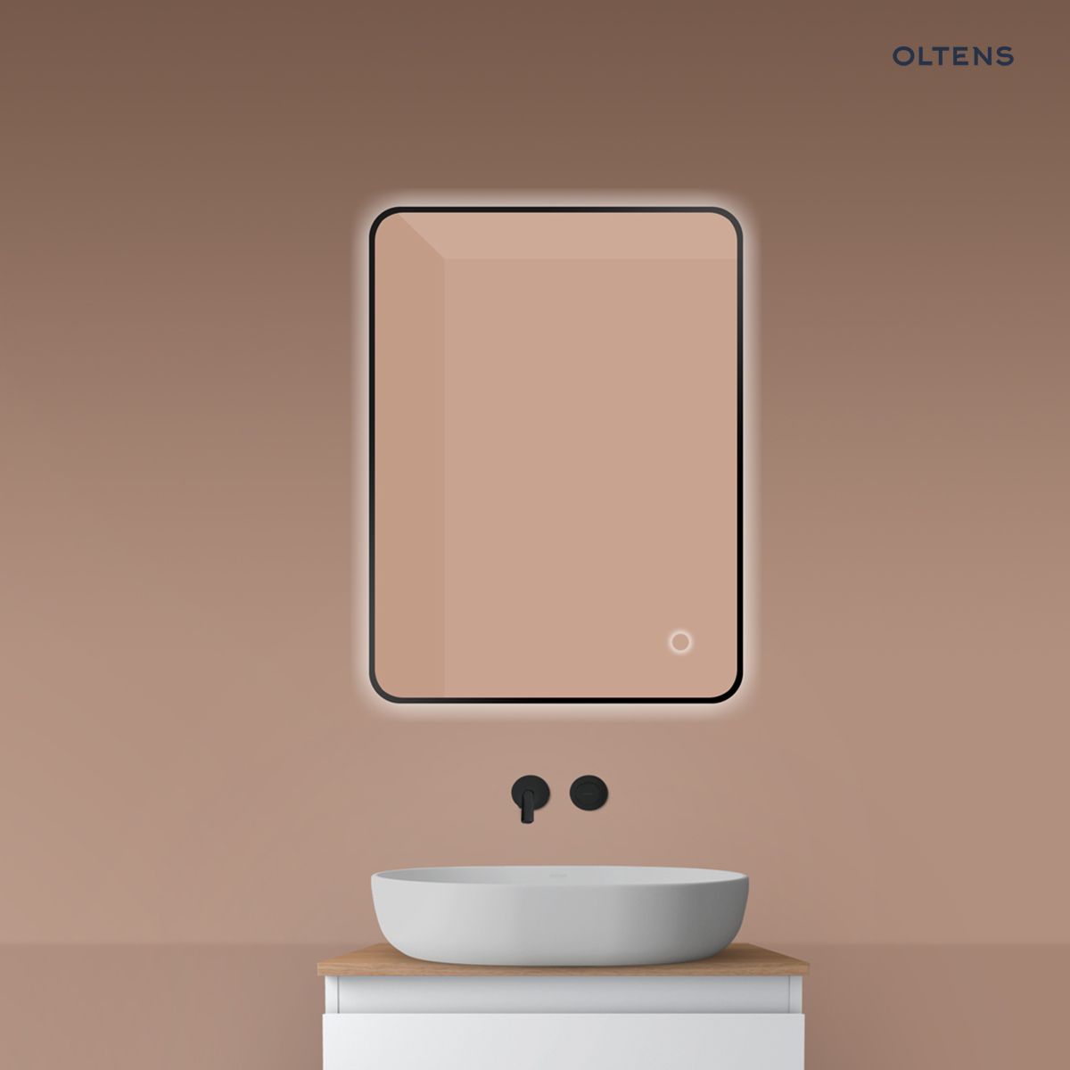Opis produktu Oltens Nordlis lustro 60x80 cm prostokątne z oświetleniem od tyłu z matą grzewczą czarny 64119300