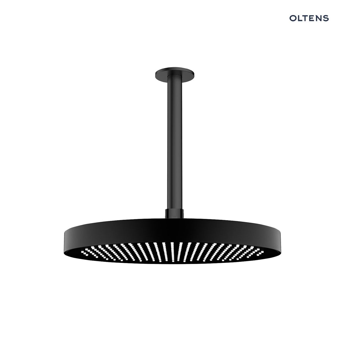 Opis produktu Oltens Regna deszczownica 32x32 cm okrągła z ramieniem sufitowym Aera czarny mat 36088300
