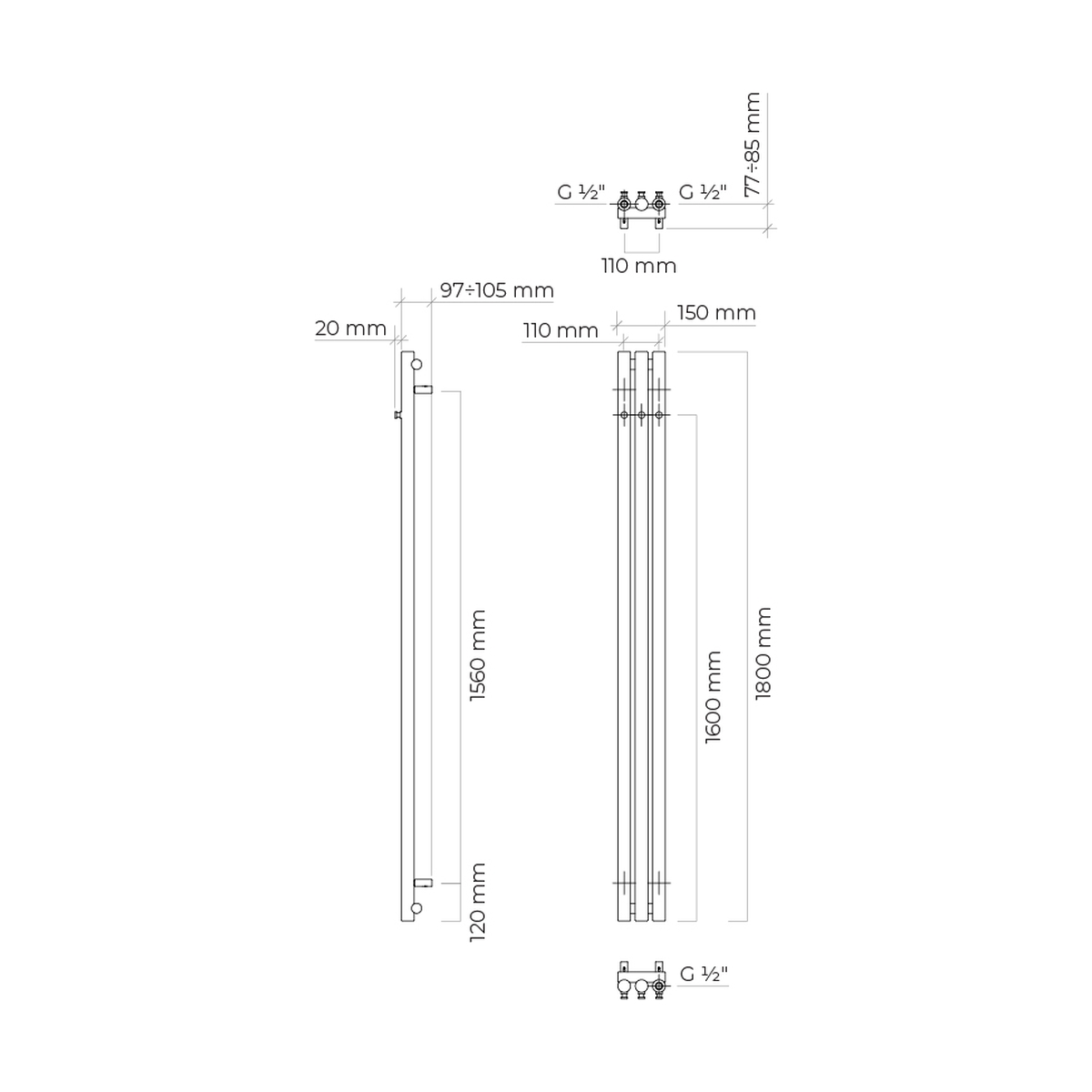 Cechy produktu Oltens Stang grzejnik łazienkowy 180x15 cm miedź szczotkowana 55011610