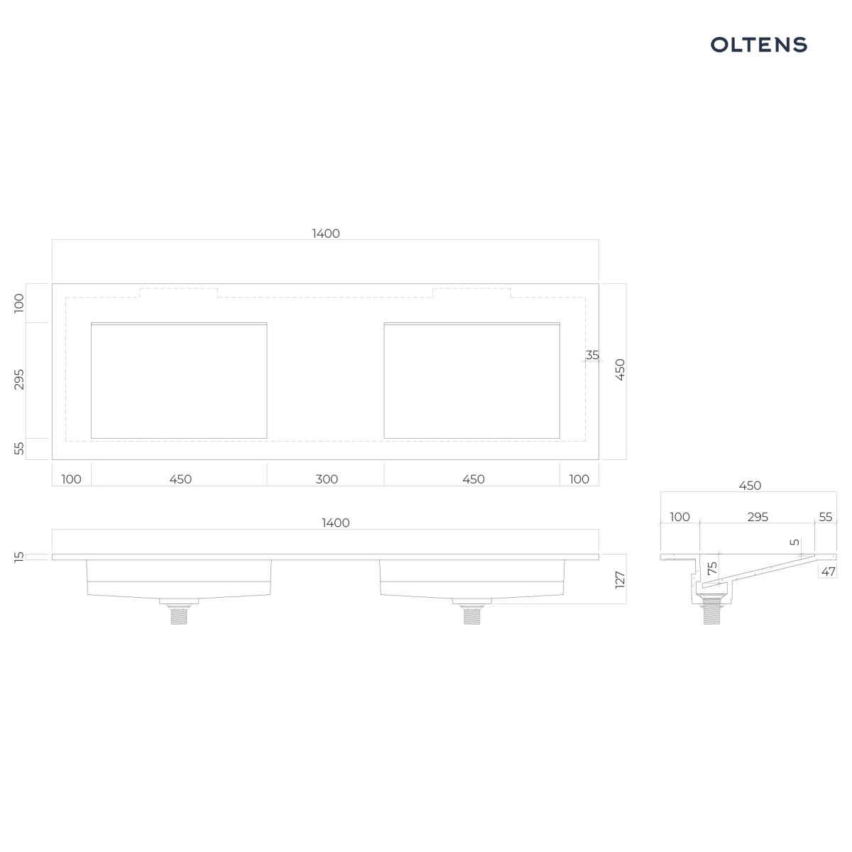 Opis produktu Oltens Stila umywalka 140x45 cm meblowa LavaForm biały połysk 40206000
