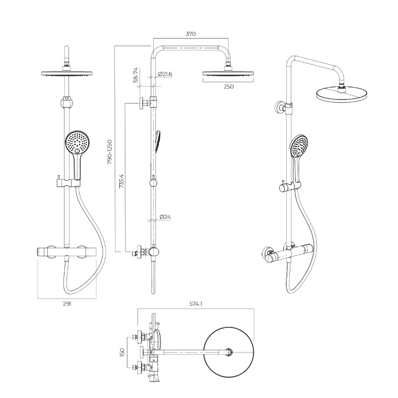 - W zestawie bateria z przełącznikiem, deszczownica, słuchawka prysznicowa, wąż prysznicowy, drążek prysznicowy