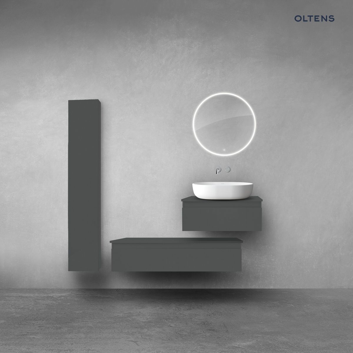 Opis produktu Oltens Vernal zestaw szafek podumywalkowych z blatem 60 i 100 cm i szafką boczną 35 cm grafit mat 68695400