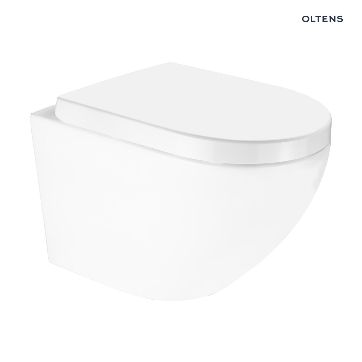 Zestaw Oltens Hamnes Kort Stille miska WC wisząca PureRim z powłoką SmartClean z deską wolnoopadającą biały 42526000