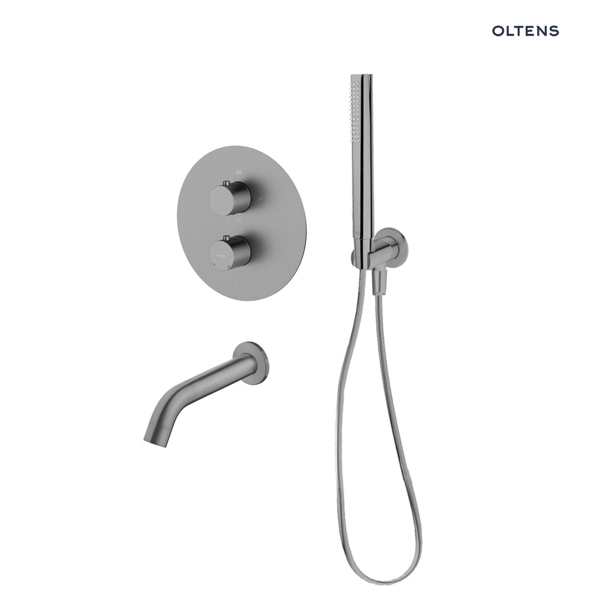 Opis produktu Zestaw Oltens Katla zestaw wannowo-prysznicowy podtynkowy termostatyczny grafit 36610400