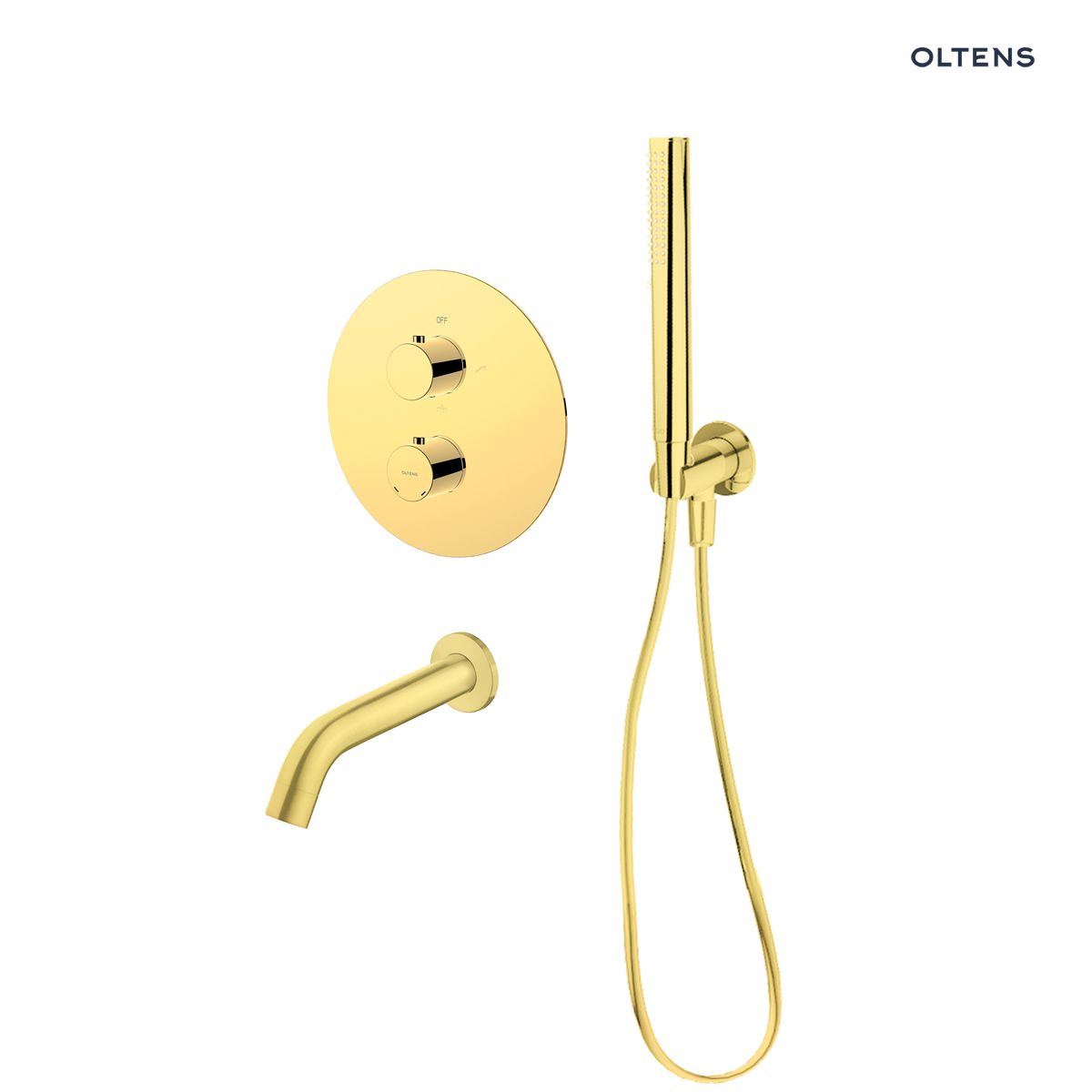 Opis produktu Zestaw Oltens Katla zestaw wannowo-prysznicowy podtynkowy termostatyczny złoty połysk 36610800