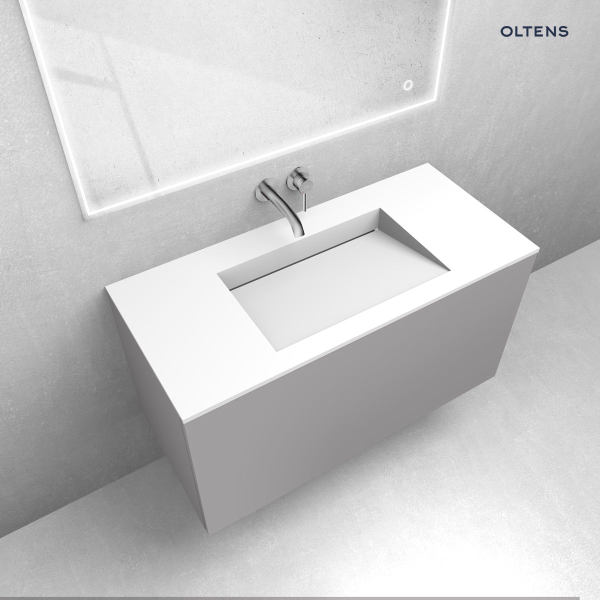 Opis produktu Zestaw Oltens Lun szafka podumywalkowa 100 cm z umywalką Stila LavaForm kaszmir/biały mat 68763900