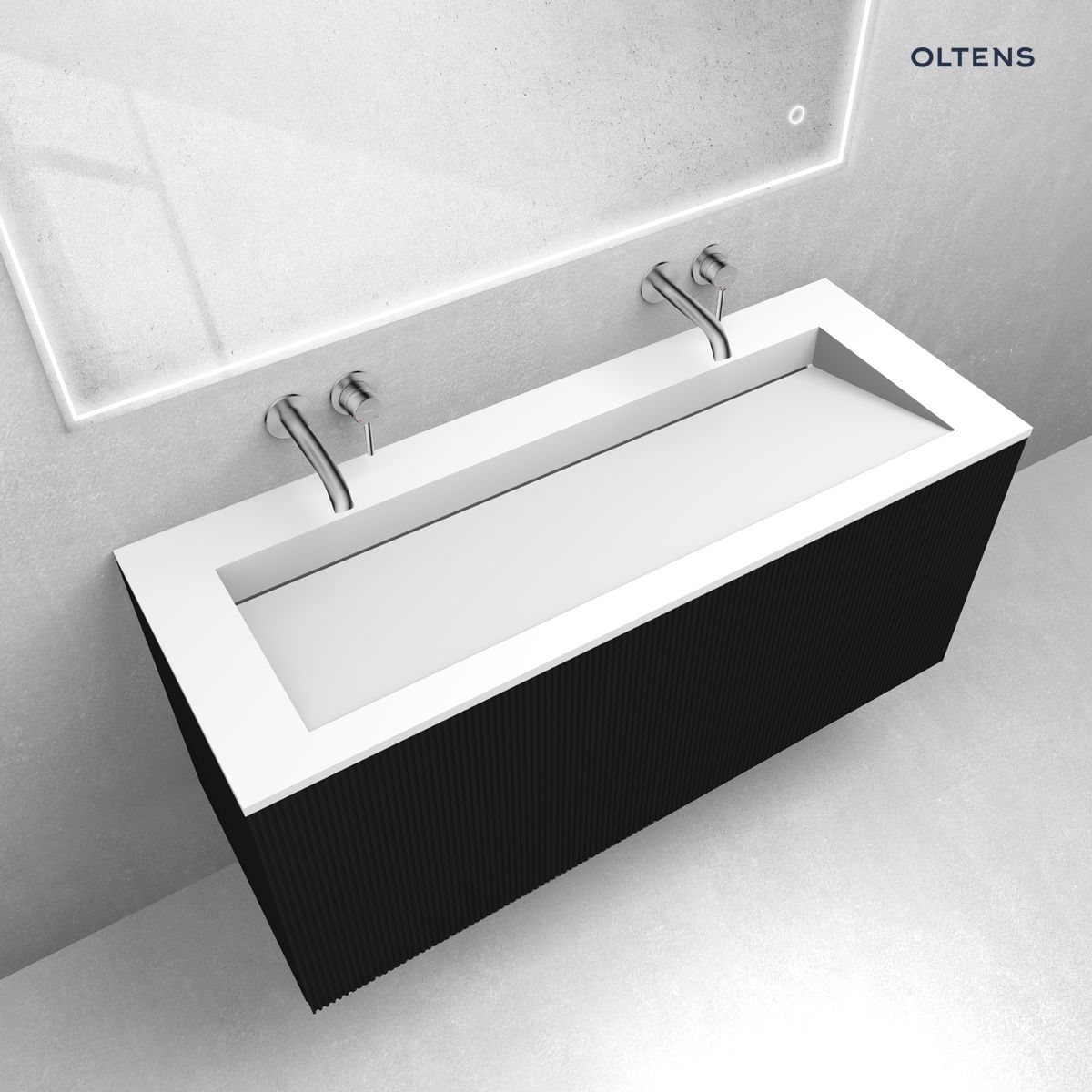 Opis produktu Zestaw Oltens Lun szafka podumywalkowa 120 cm z umywalką Stila LavaForm czarny mat/biały mat 68755300