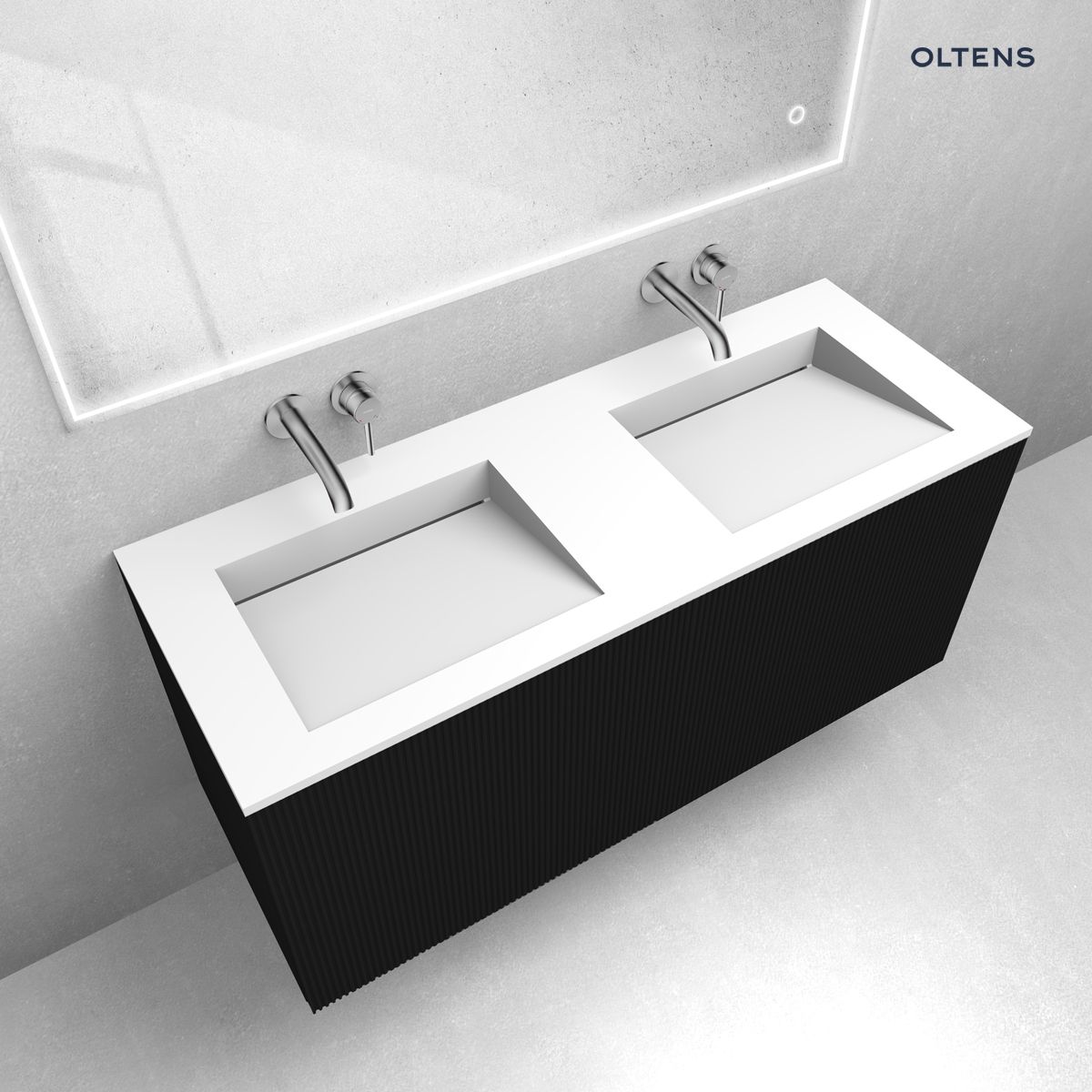 Opis produktu Zestaw Oltens Lun szafka podumywalkowa 120 cm z umywalką Stila LavaForm czarny mat/biały mat 68757300