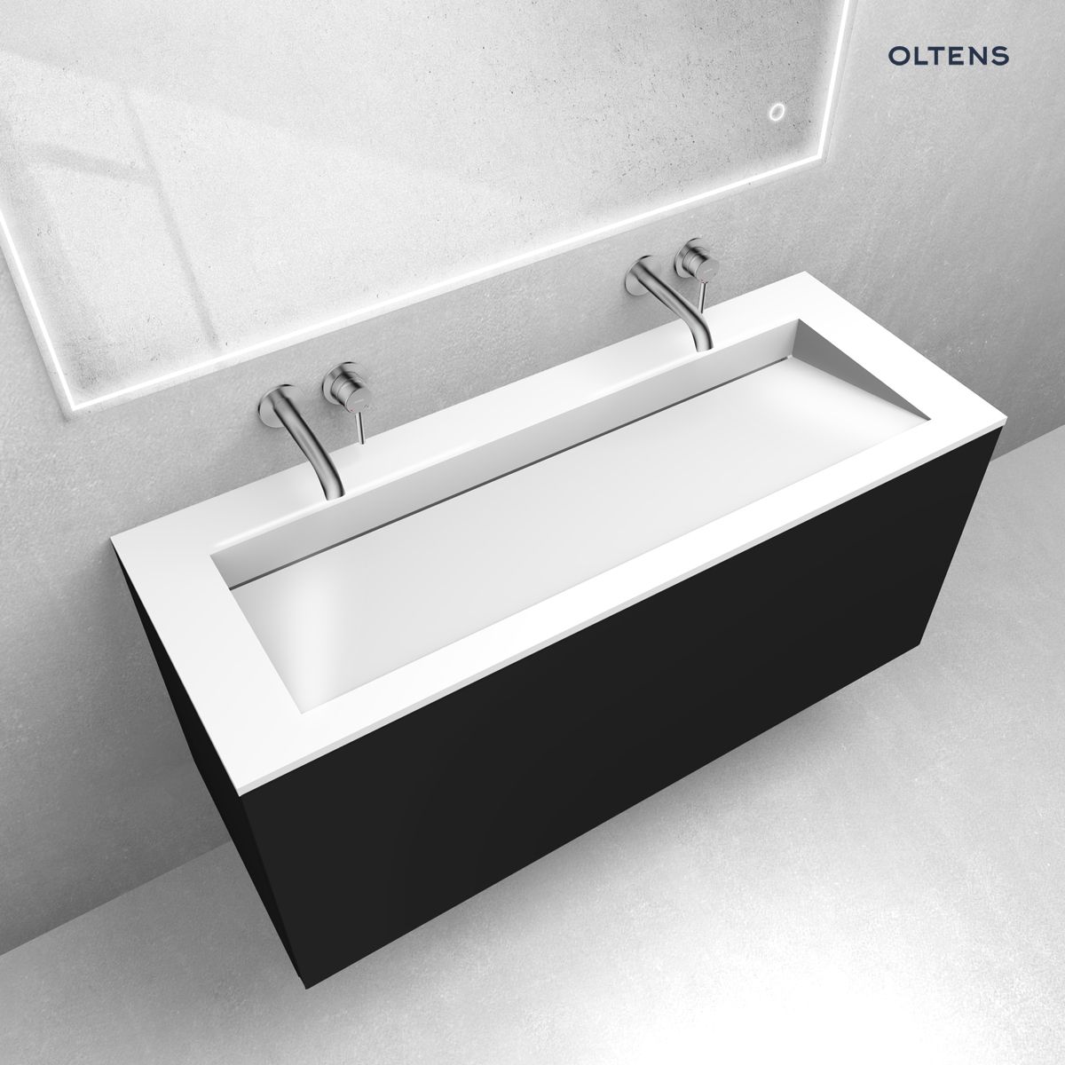 Opis produktu Zestaw Oltens Lun szafka podumywalkowa 120 cm z umywalką Stila LavaForm czarny mat/biały połysk 68764300
