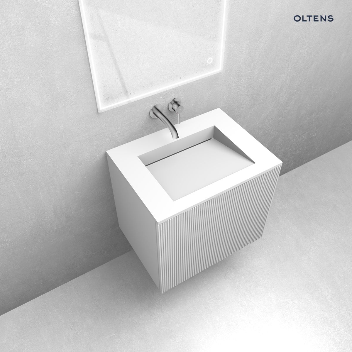 Opis produktu Zestaw Oltens Lun szafka podumywalkowa 60 cm z umywalką Stila LavaForm biały mat 68749000