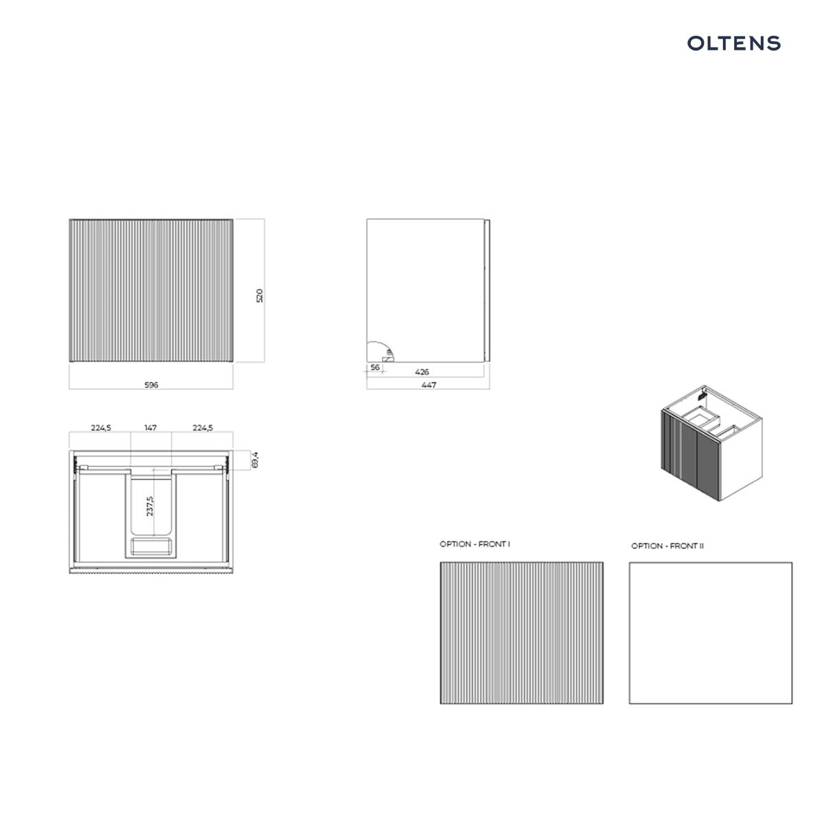 Zawartość zestawu Oltens Lun szafka podumywalkowa 60 cm z umywalką Stila LavaForm czarny mat/biały mat 68749300