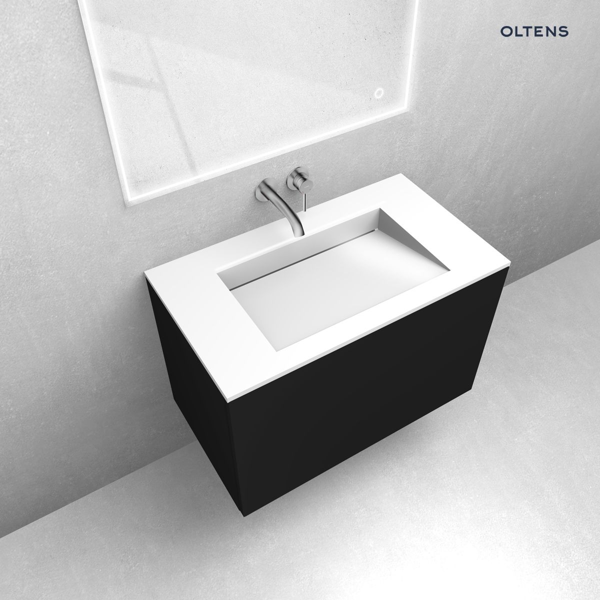 Opis produktu Zestaw Oltens Lun szafka podumywalkowa 80 cm z umywalką Stila LavaForm czarny mat/biały połysk 68760300